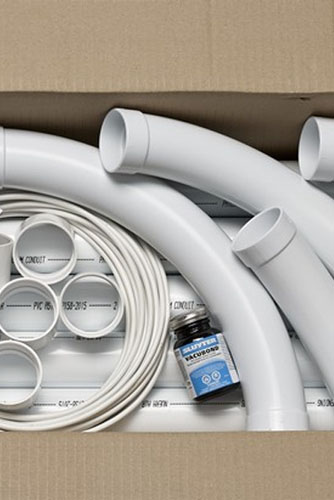 - Każdy zestaw zawiera antystatyczne rury dwuwarstwowe, kształtki, instrukcję montażu oraz opakowanie chroniące elementy przed uszkodzeniami.