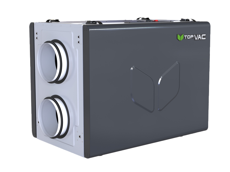 Nowoczesna centrala wentylacyjna podsufitowa TopVac 350, 450 – FCF z odzyskiem ciepła, przeznaczona do domów, mieszkań i obiektów o średnim zapotrzebowaniu na wentylację.